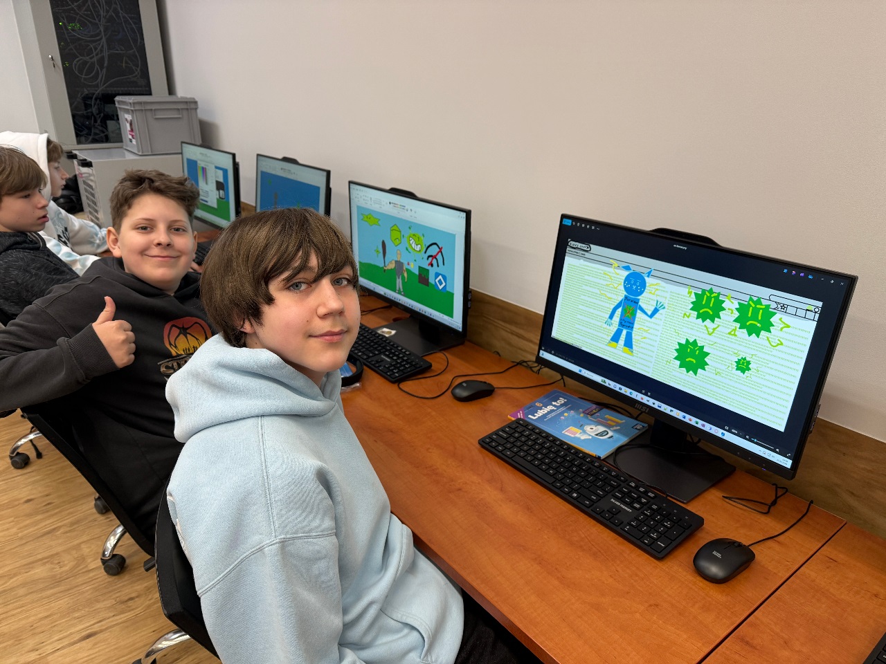 Działania nasze dotyczyły zajęć edukacyjnych, na których uczniowie pogłębili wiedzę jak bezpiecznie poruszać się w Internecie. W tym celu wykorzystywaliśmy lekcje prowadzone przez Łukasza Wojtasik - eksperta Fundacji Dajemy Dzieciom Siłę ds. bezpieczeństwa dzieci w Internecie i autora książek o przygodach Sieciaków. W klasach starszych poruszyliśmy także tematykę związaną z umiejętnością świadomego korzystania ze sztucznej inteligencji.